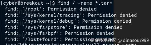 回到根目录用命令find -name tar查找有关tar的信息,但都没有权限