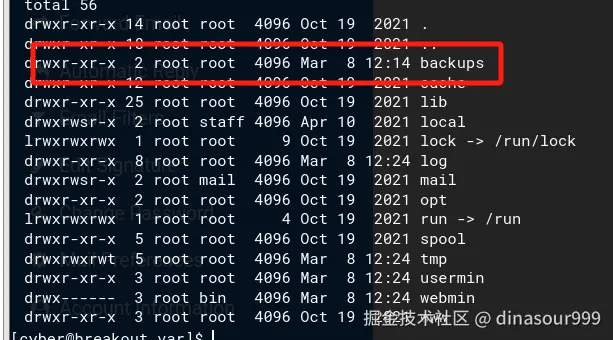 再去看看网站目录,进入var目录下查看发现一个备份文件,