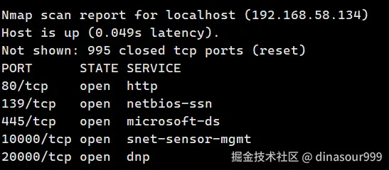 1.先用nmap扫发现一个主机ip192.168.58.134,并且开放的80,10000,20000端口都有http服务