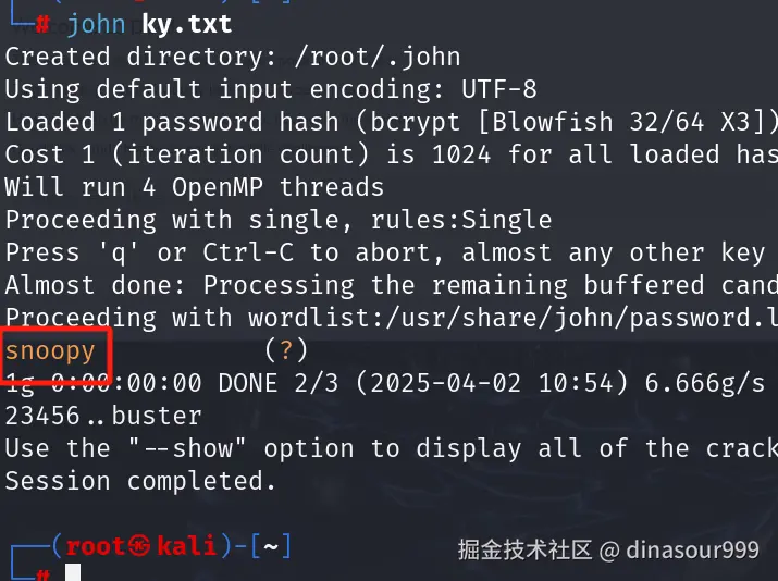 利用john对密码进行解密,解的密码为snoopy