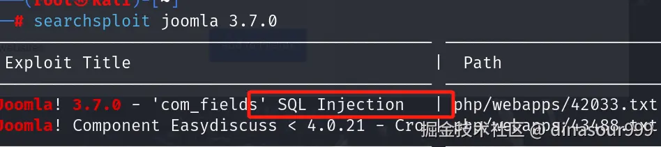 用searchsploit joomla 3.7.0 查一下看看有没有该版本的漏洞,找到一个sql注入