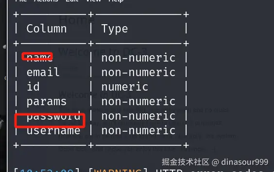 我们再对#_users表进行爆字段,爆出了我们要的name和password字段