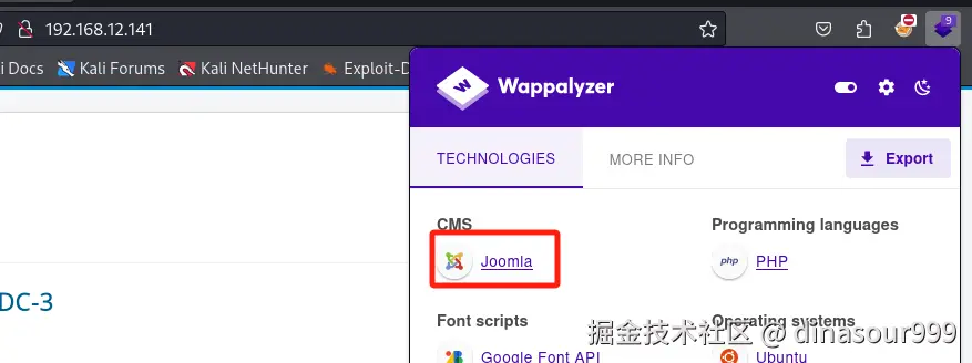直接访问网站看一看,发现是个登陆界面并且指纹探测出来是个joomla框架