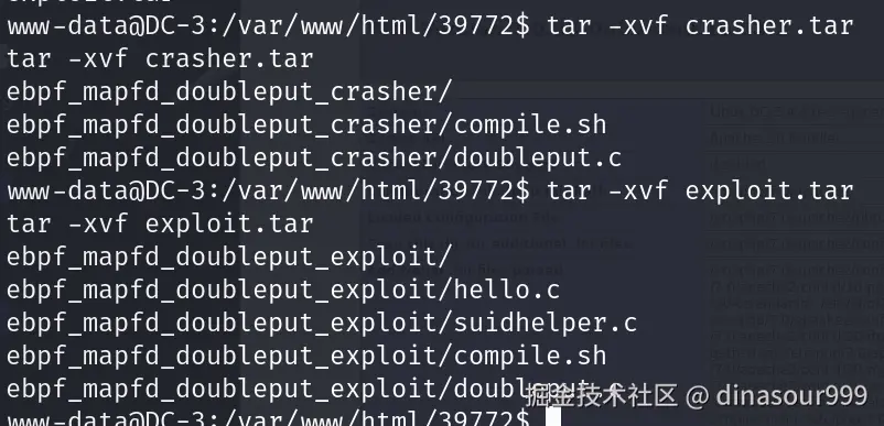 用命令tar -xvf crasher.tar tar -xvf exploit.tar 解压这两个文件
