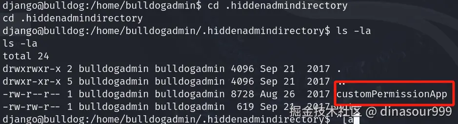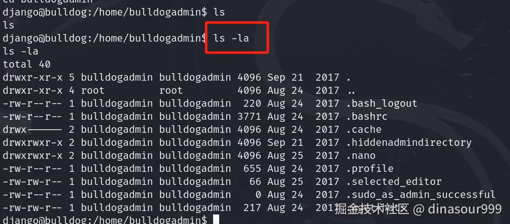先进入bulldogadmin ls没有,也要记得ls -la看看有没有隐藏文件