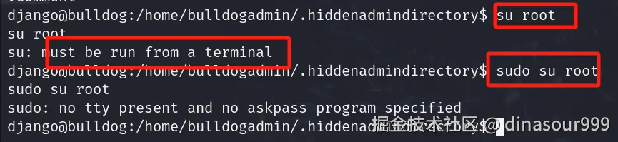 尝试su提权,说su命令必须从终端运行