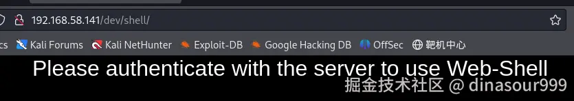 分别打开两个地址看看,发现dev下有个上传webshell的地方,但是提示我们使用服务器来验证此接口 robots文件里没什么东西