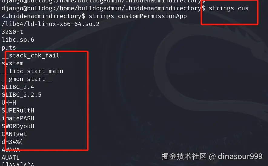 进去看发现一个custompermissionapp,cat看一下有点东西又有乱码的我们可以用strings来提取字符串