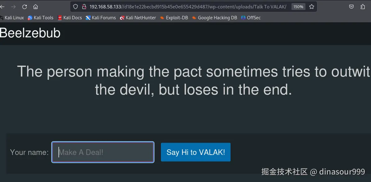 这时候随便点点看,发现Talk To VALAK目录点进去跳转到beelzebub网页