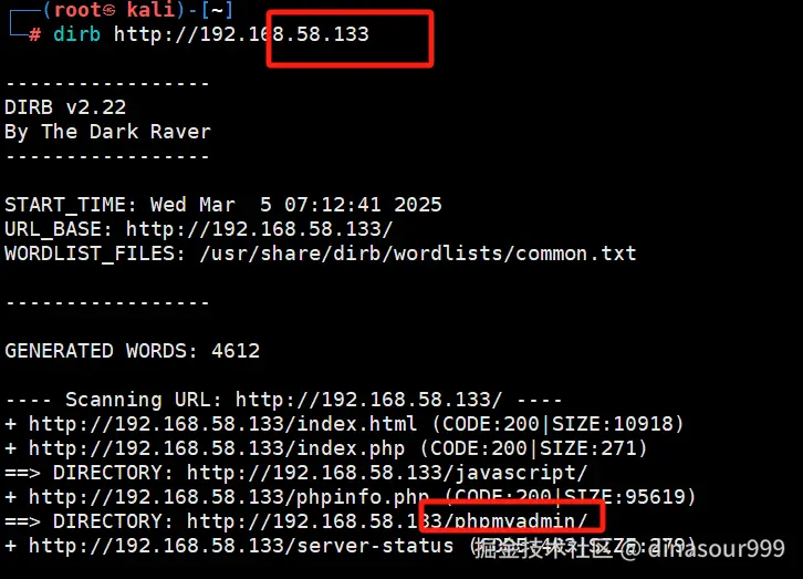 2.利用dirb命令扫描http://192.168.58.133的目录