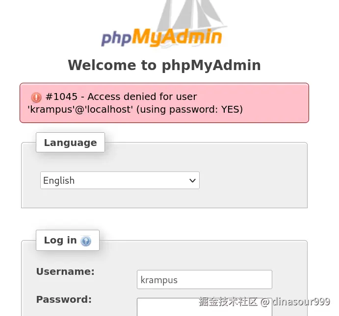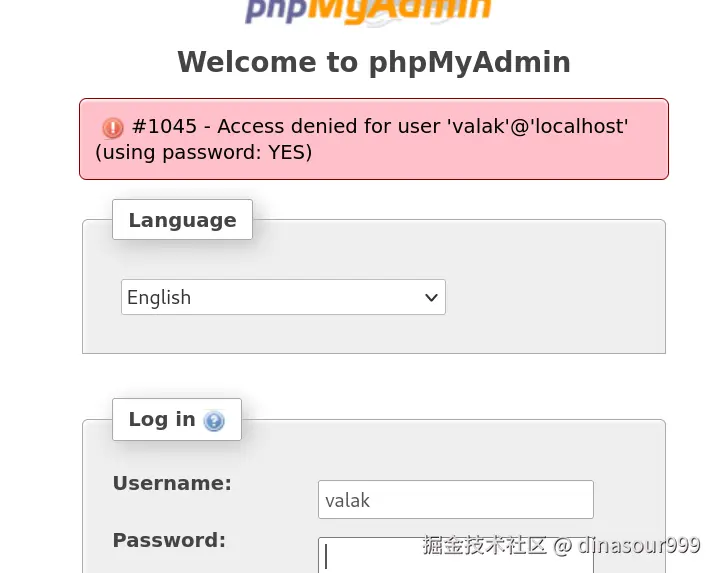 将扫出的用户名及找到的密码登录phpmyadmin,发现都不对
