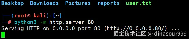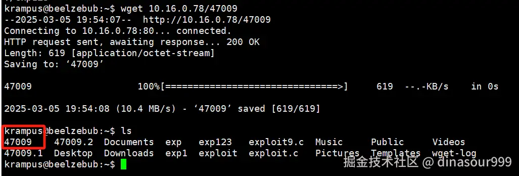 下载下来,ls看到有个47009的文件 在kali中使用命令python3 -m http.server 80,将47009传给目标主机终端