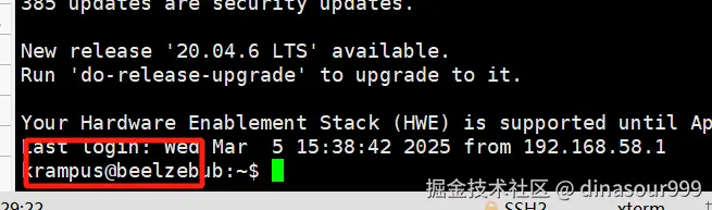 8.目标主机开了ssh,尝试远程登录发现krampus账户登录成功