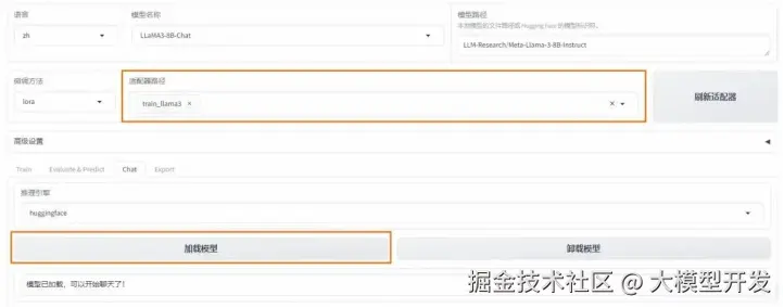 📁 在 Chat ⻚⾯加载微调后的模型,即可开始对话。