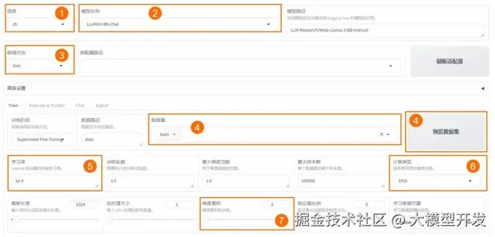 - 输出⽬录建议设为train_llama3