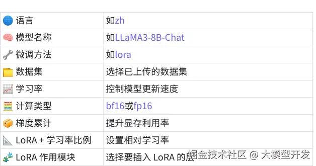 - 极致的易用性:不仅提供Web UI,还支持通过配置文件(YAML格式)定义训练参数,开发者可直接修改参数文件快速复现不同训练方案,无需深入框架源码。