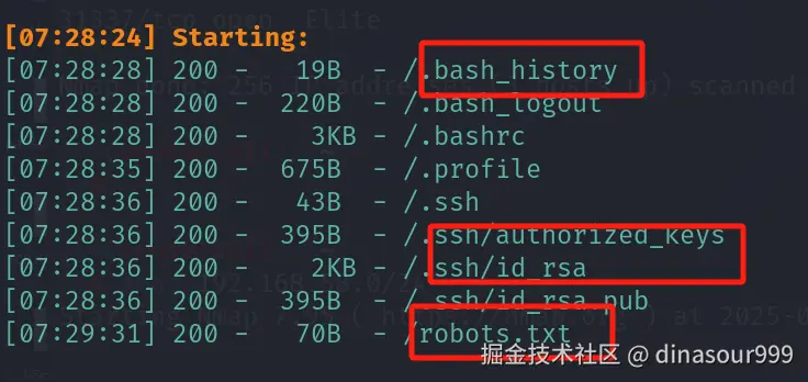 dirsearch扫描目录,80端口没扫出东西,但31337扫出来了robots,还有历史命令和公钥私钥文件