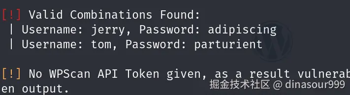 再利用wpscan --url dc-2 -e u (-e:扫描用户账号)扫描一下,扫出三个用户tom ,admin,jerry