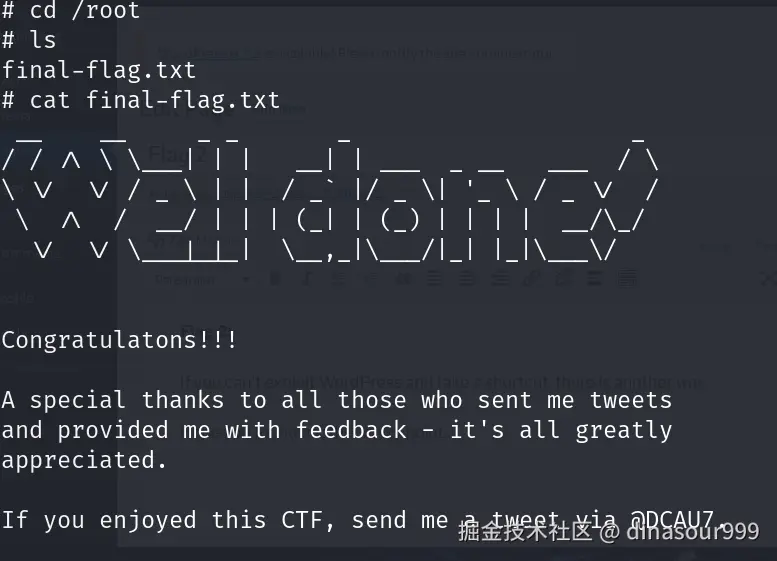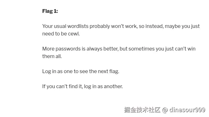 看看网页有什么有用的信息,直接就发现该网站用的框架是wordpress(一般有后台) 点进flag,找到flag1