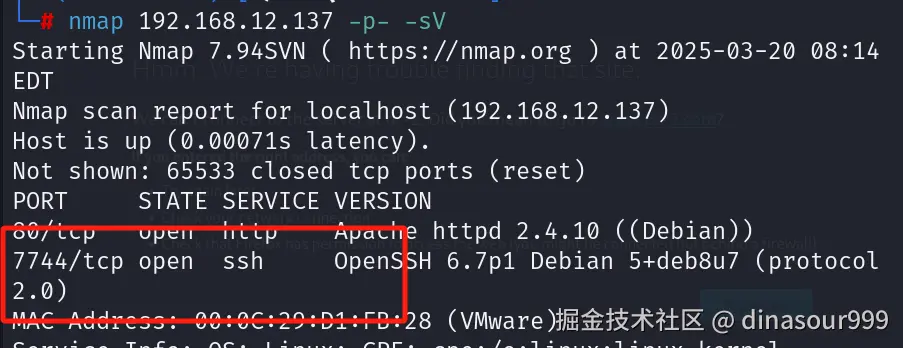 提示我们wordpress搞不了的话还有另一个方法,这时候想到前面端口收集还有个ssh(因为端口被改成7744,所以我们要指定端口)