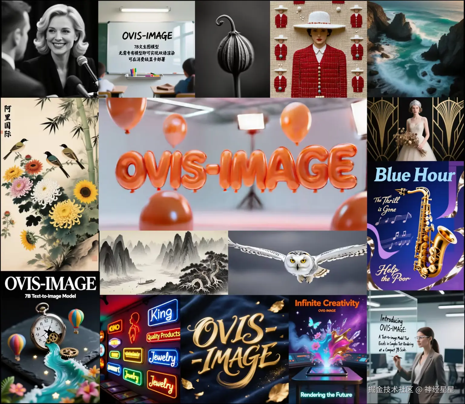 Ovis-Image 是一个高质量图像生成模型(Text-to-Image, T2I)系统,由 AIDC-AI 团队发布的 Ovis-Image-7B 高保真文本到图像生成模型构建。该系统采用多尺度 Transformer 编码器与自回归生成架构,在高分辨率图像生成、细节表现及多风格适配能力上表现卓越。