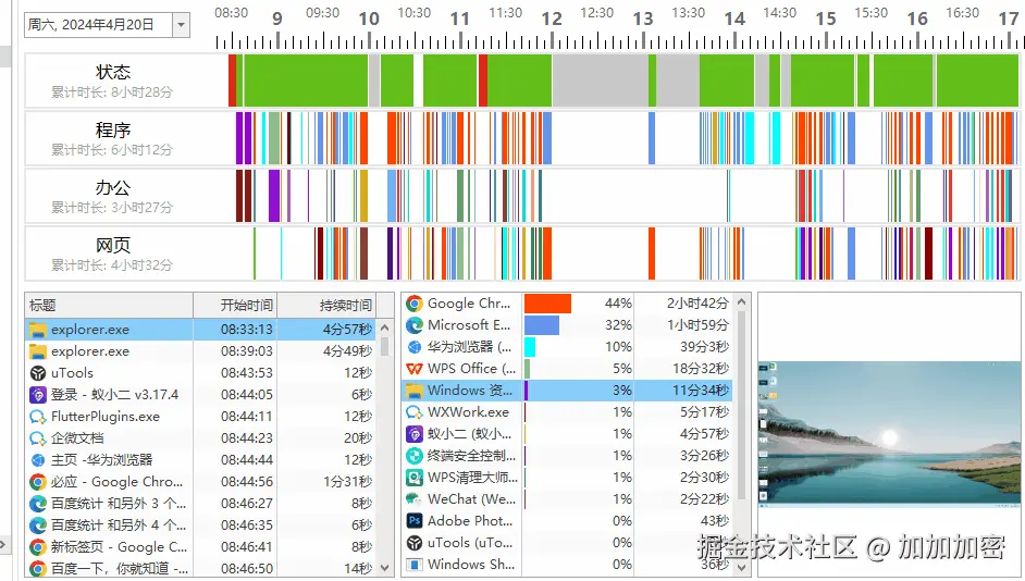- 应用使用分析:统计网站/应用占比,生成团队效率报告(如“市场部35%时间刷社交媒体”)。
