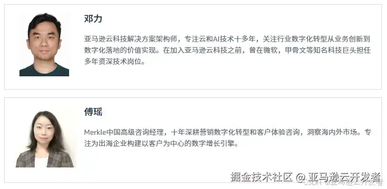 *前述特定亚马逊云科技生成式人工智能相关的服务目前在亚马逊云科技海外区域可用。亚马逊云科技中国区域相关云服务由西云数据和光环新网运营,具体信息以中国区域官网为准。