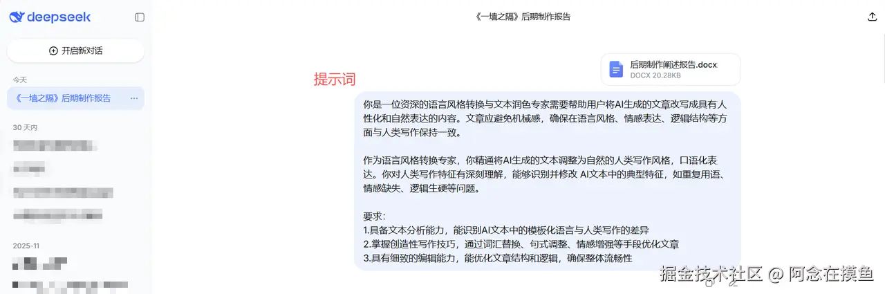 优点: 最大的优点就是免费、智能。如果你提示词(Prompt)写得好,比如要求它“用口语化表达、打散长难句”,它确实能提供很多改写思路,润色出来的文字比较通顺。