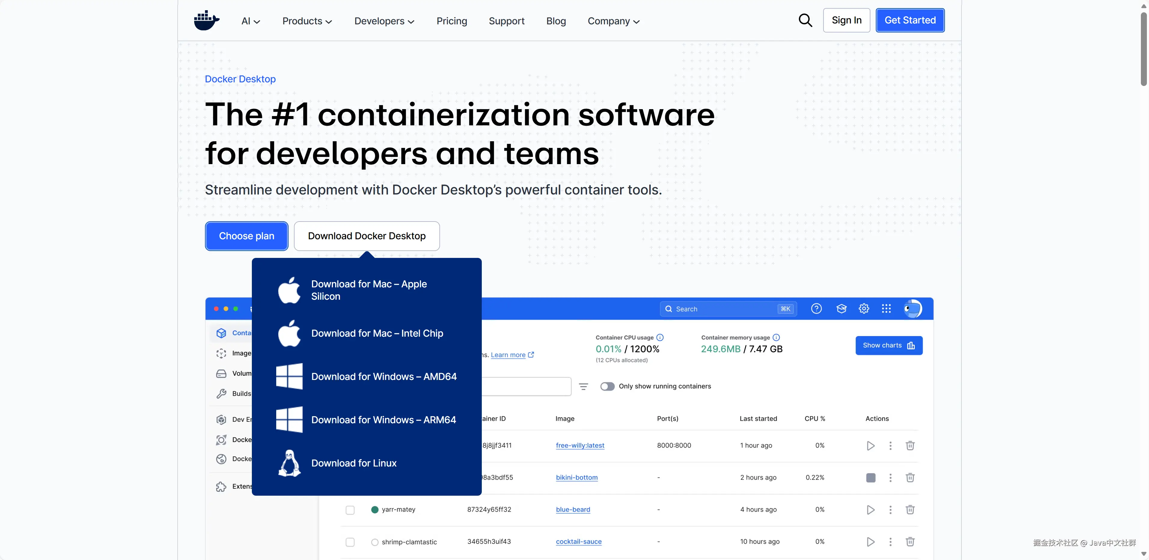 大家直接访问 docker.com,下载并安装 Docker Desktop。