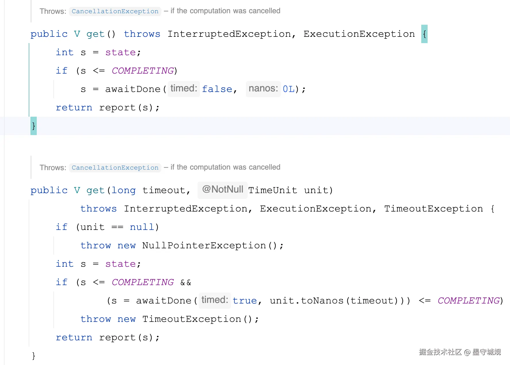 最终都会调用到awaitDone()这个方法,我们就从简单的get方法来进行分析