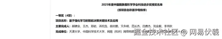 **“图象图形学”**是支撑多项国家战略需求的关键前沿交叉学科,通俗来说就是让计算机能够“看懂”并“描绘”世界。从手机的人脸识别,到航天卫星的视觉导航,再到国防装备的精确制导,应用极为广泛。而中国图象图形学学会,则是中国在图像图形领域最权威、最具影响力的国家级学术组织。此次获奖,不仅是对项目《基于强化学习的智能决策关键技术及应用》的肯定,更标志数字文娱作品的价值与影响已经超过了“玩游戏”的范畴。