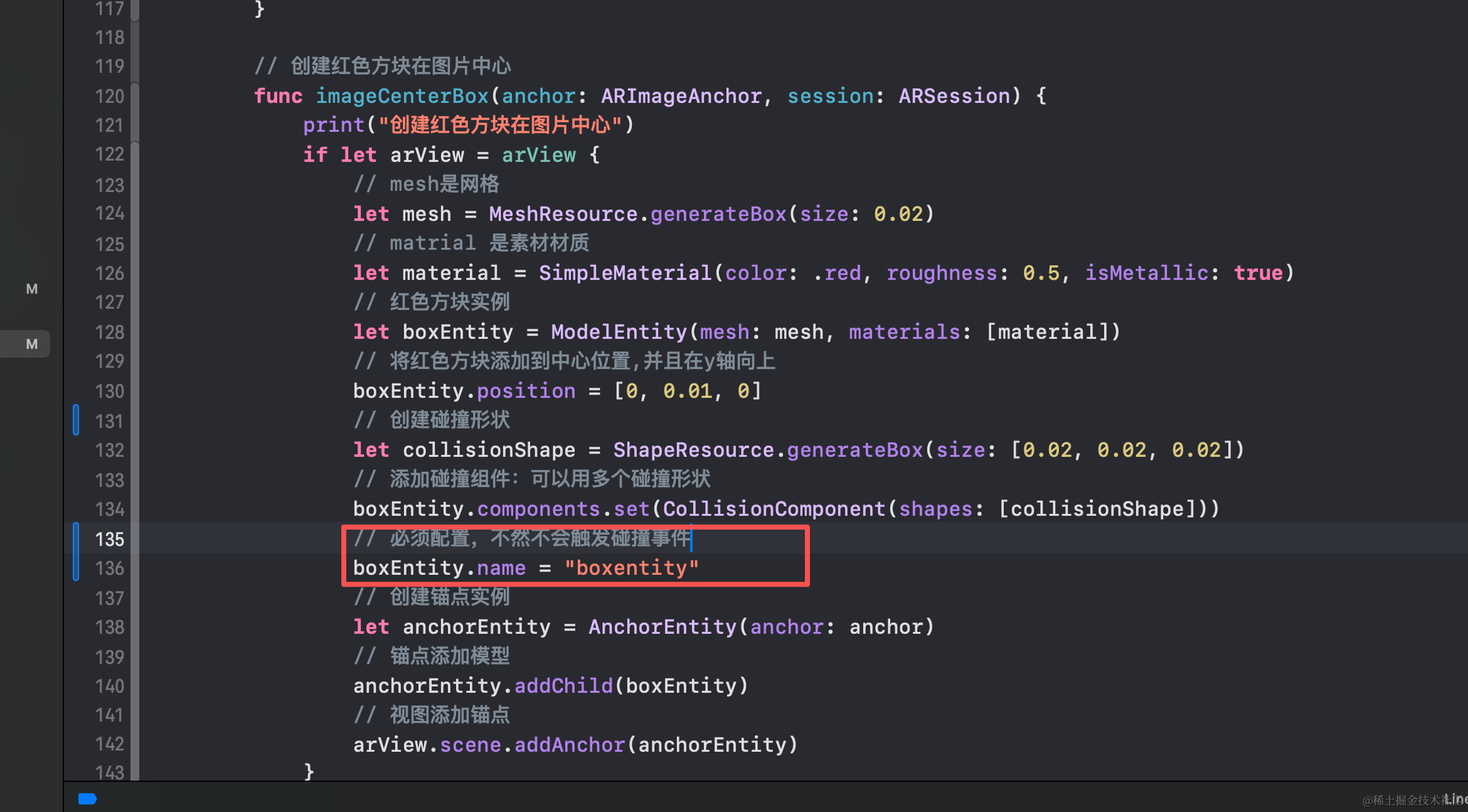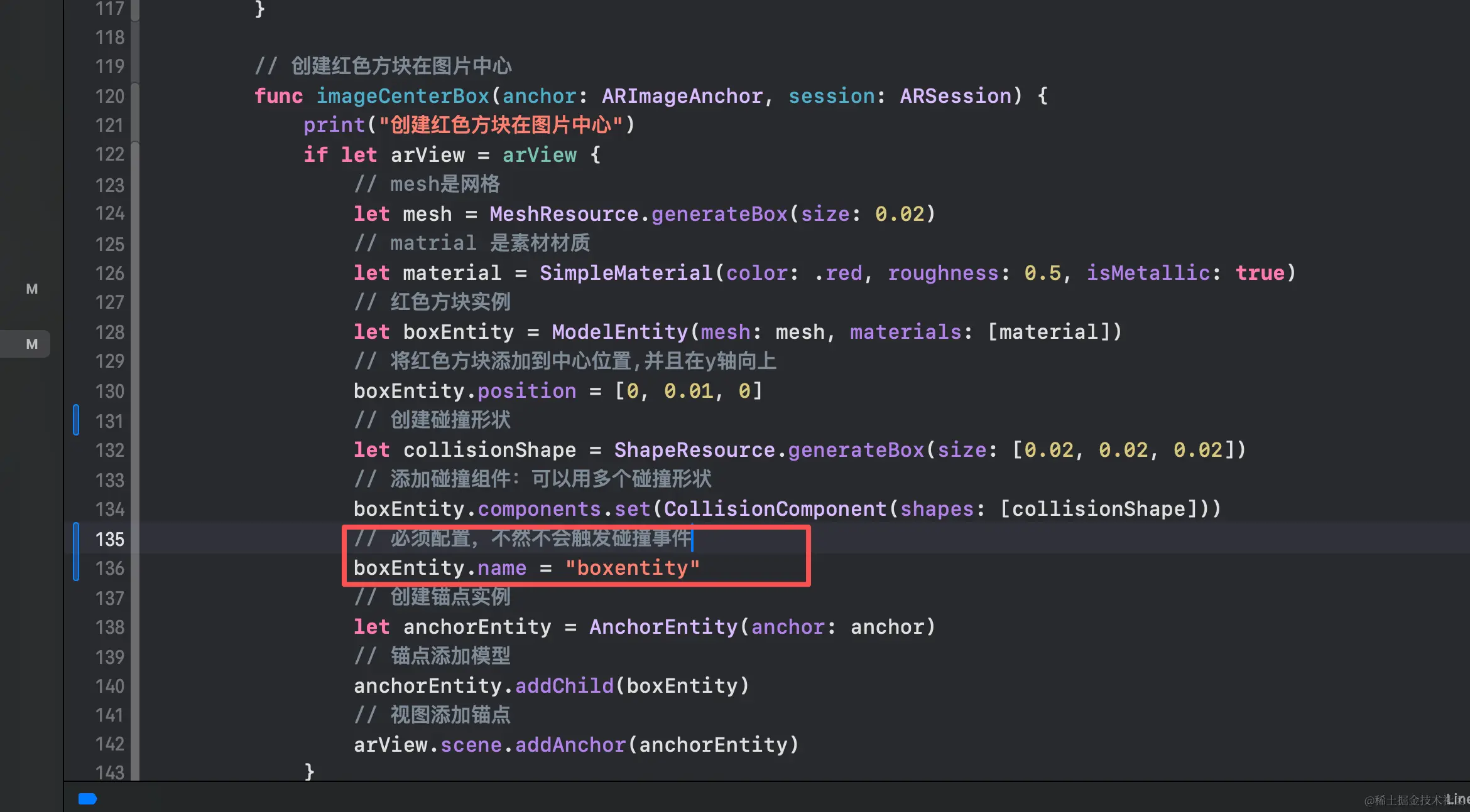给3D物体添加碰撞组件,然后在给ARView配置订阅碰撞事件,并且一定要给3D对象实体配置name属性,不然不会触发碰撞订阅事件!!!!