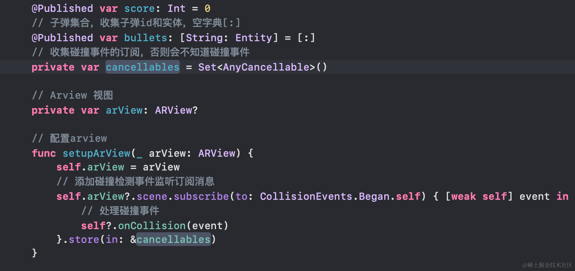 cancellables是可取消的,是框架中管理订阅生命周期的关键容器