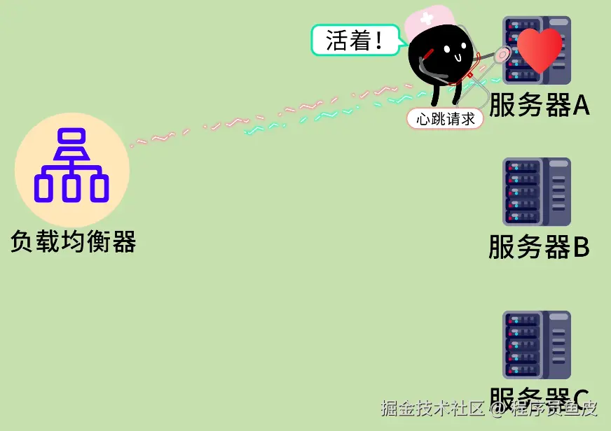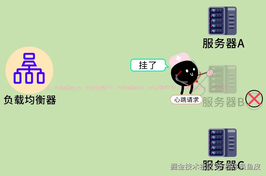 鱼皮:这就是 健康检查 机制。负载均衡器会定期(比如每隔几秒)向后端服务器发送心跳请求,检查服务器是否正常响应。