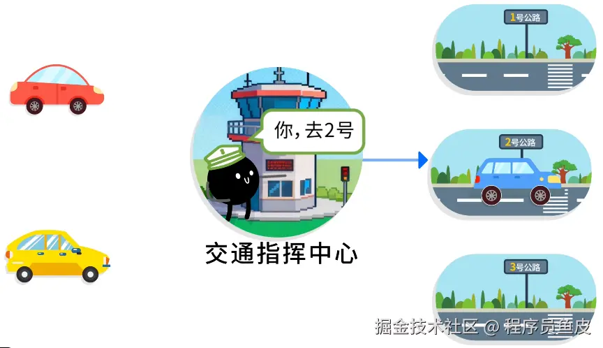 鱼皮:LB 是指 负载均衡(Load Balancer),它就像一个 “交通指挥中心”。车辆来了,不是自己随便选道路,而是由指挥中心统一调度走哪条路线,避免某条路堵死、其他路却空着。
