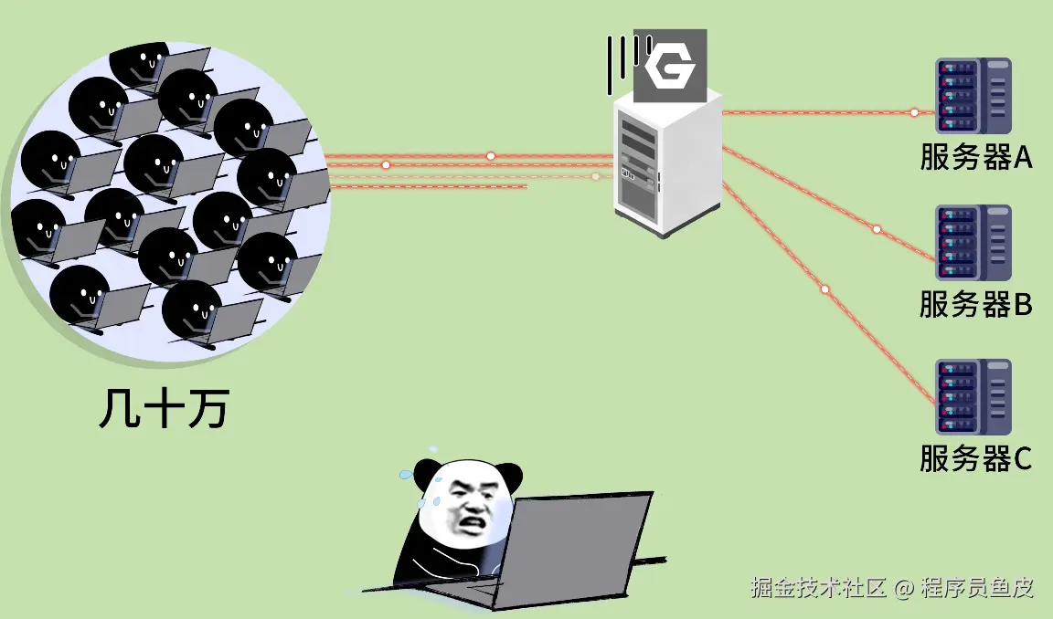 一个月后,你的网站又不小心被一个更知名的博主 “驴皮” 分享了,瞬时用户量暴增到几十万,竟然把你部署 Nginx 的服务器都给冲爆了!