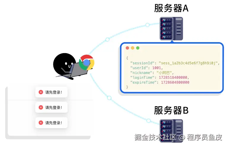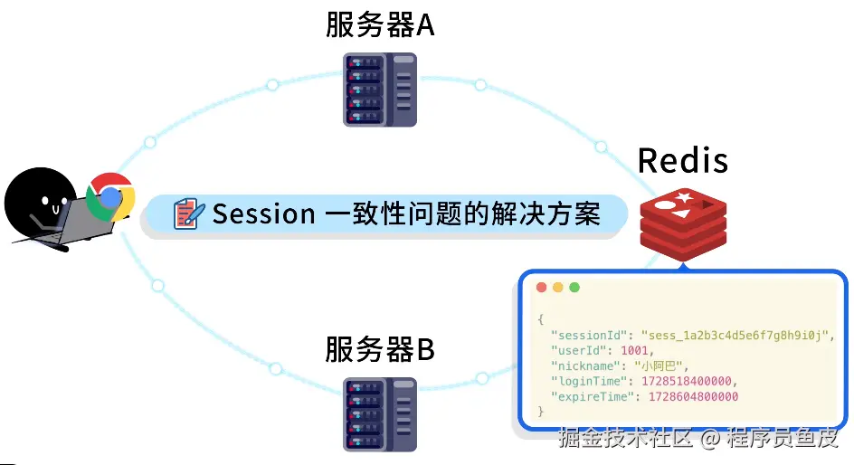 你:等等,如果用户第一次请求分配到服务器 A 并保存了登录态,第二次请求分配到服务器 B,登录态不就丢失了么?