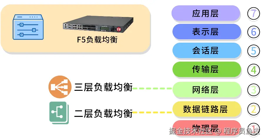 鱼皮:当然!还有二层和三层负载均衡。或者利用专业的硬件设备做负载均衡,比如性能极高的 F5,但价格也极高,入门级的设备都要十几万。