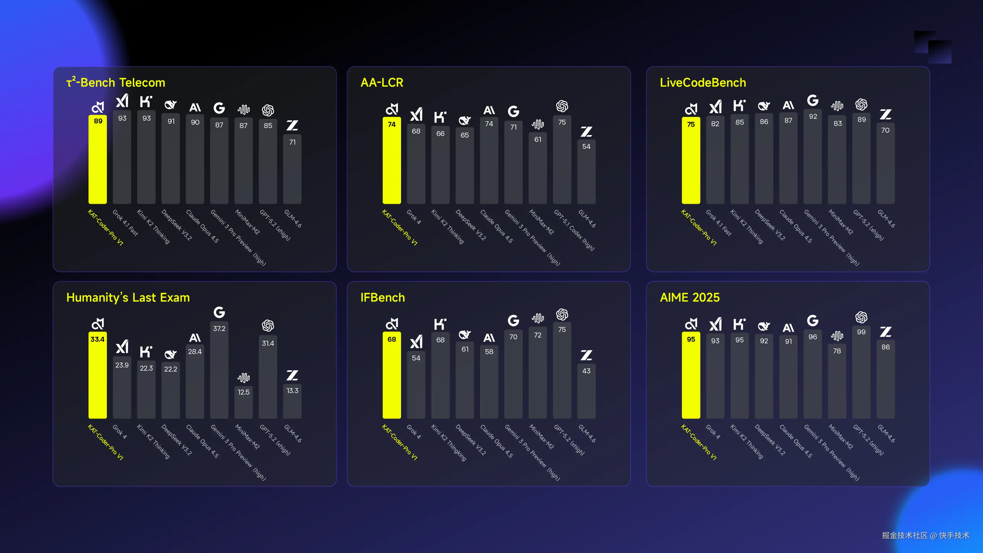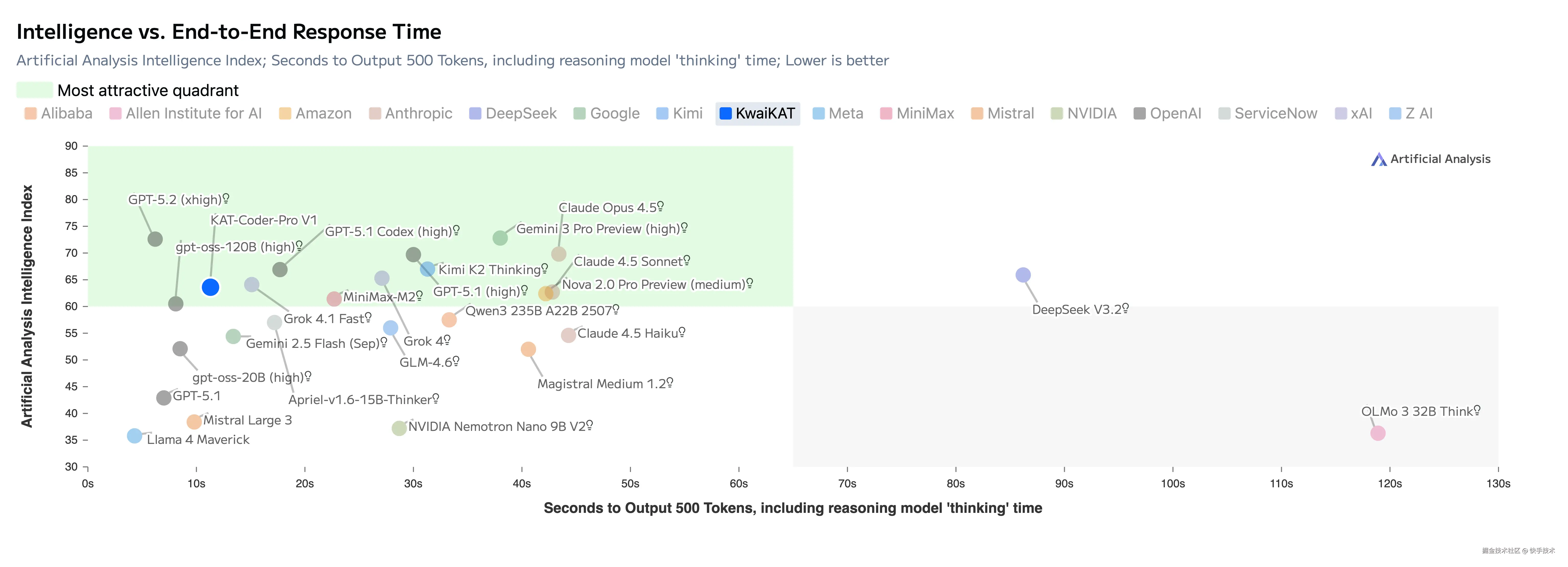 随着我们进一步提升模型的通用任务能力,KAT-Coder-Pro V1 在 Artificial Analysis(AA)权威评测中展现出全面且强劲的性能提升,核心指标表现如下: