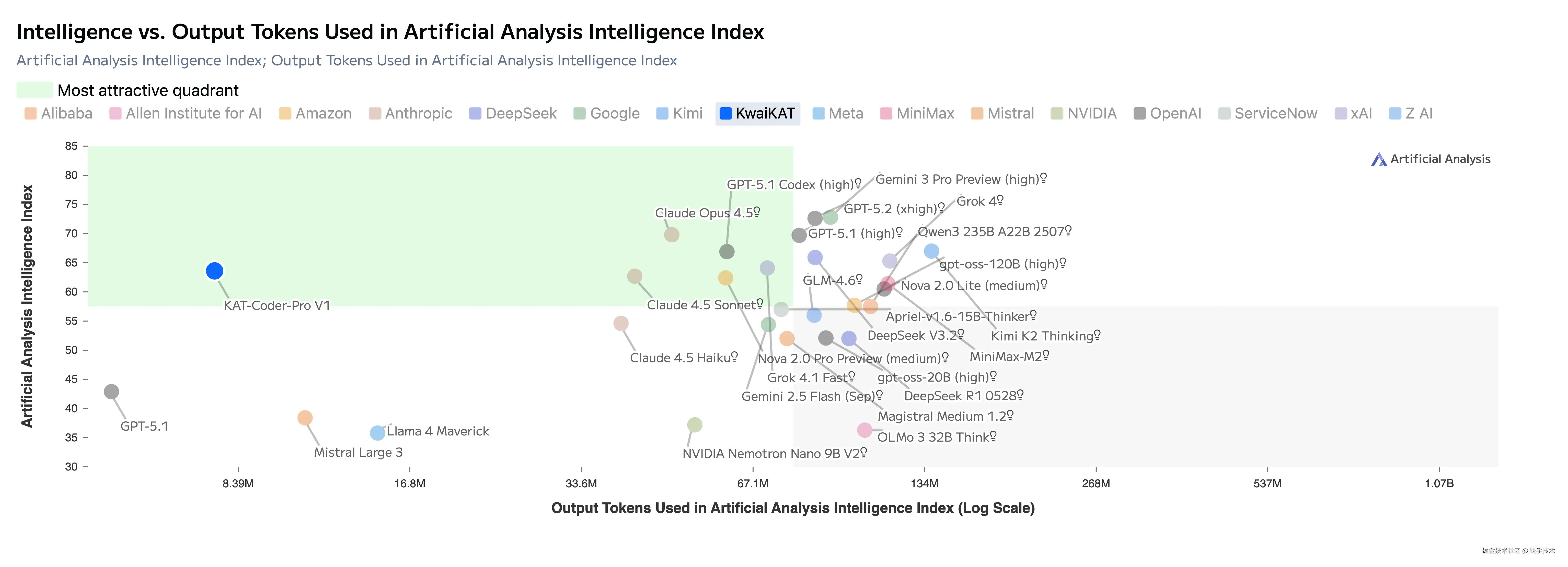 在 AA 评测任务中,KAT-Coder-Pro V1 的输出 Token 消耗量远低于同性能区间的其他模型(如 Claude 4.5 Sonnet、Grok 4.1 Fast)。这意味着,搭配 KAT-Coder-Pro V1 极具竞争力的定价,在真实世界的相同编程任务中,KAT-Coder-Pro V1 能让用户以更低成本获得稳定且高质量的输出,更好的实现了价格与质量的平衡,无疑是 AI 编程场景下极具竞争力的高性价比之选。