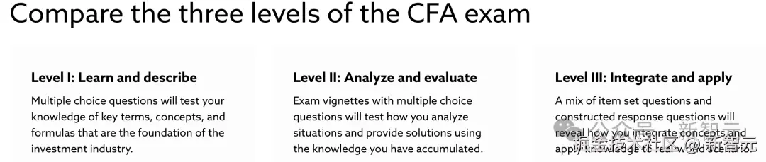全部三级考试,需要逐级通过,涵盖从基础知识到应用分析、直至复杂投资组合构建的进阶能力。