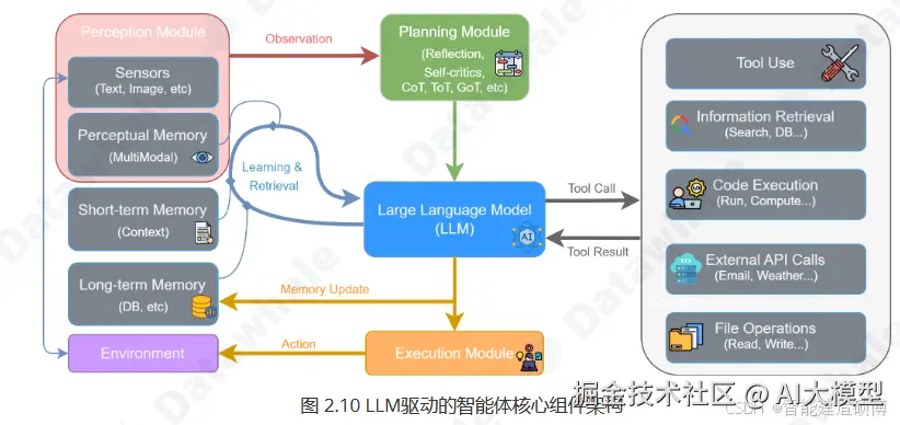基于大型语言模型的智能体是一个具备自主性的、以目标为导向的系统。它不仅仅是执行预设指令,而是能够在一定程度上理解环境、进行推理、制定计划,并动态地采取行动以达成最终目标。LLM在其中扮演着"大脑"的角色。这种基于实时信息进行动态推理和决策的能力,正是Agent的核心价值所在。