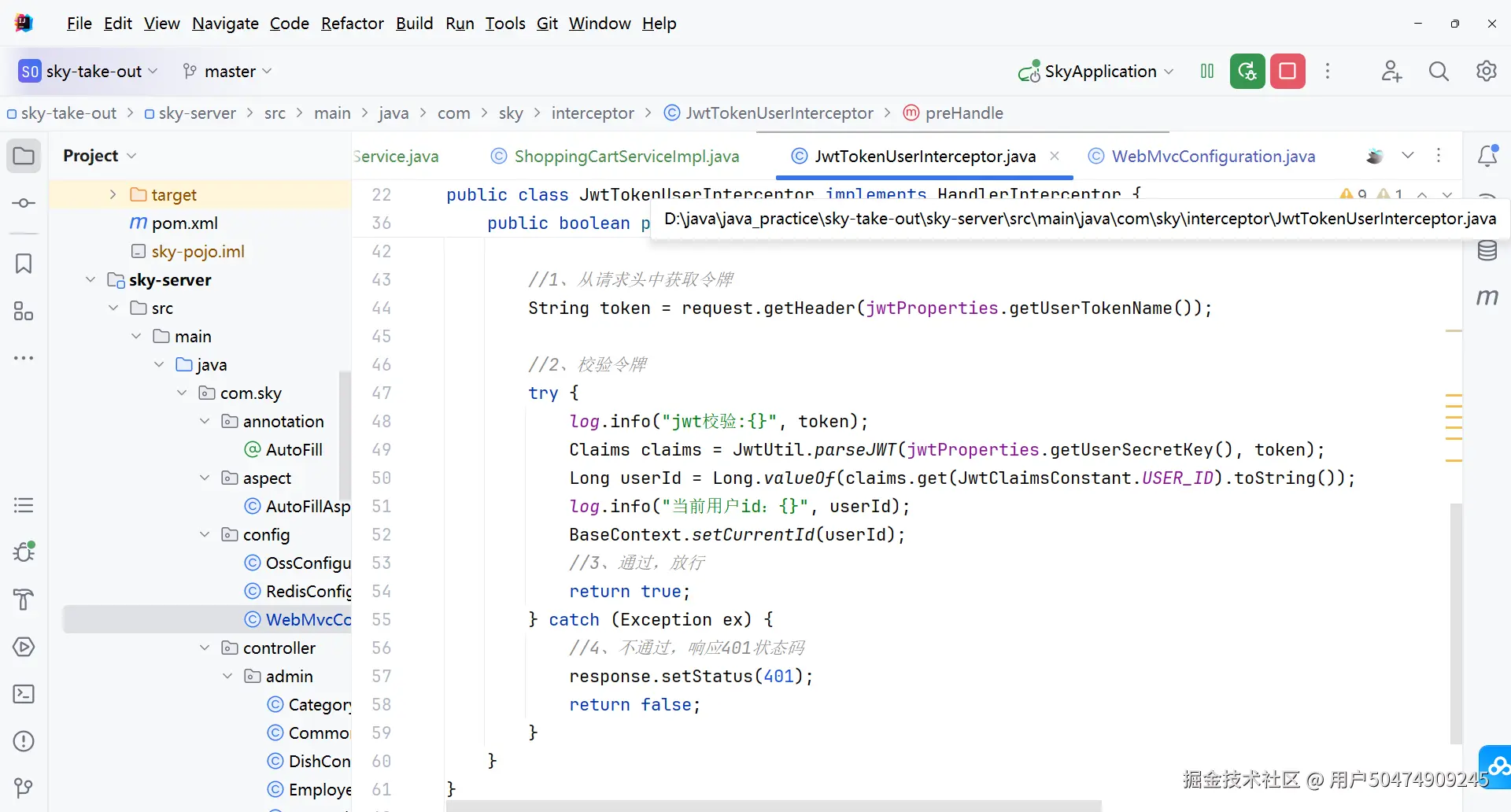 1. JwtTokenUserInterceptor这个类下面的user是否写成了admin