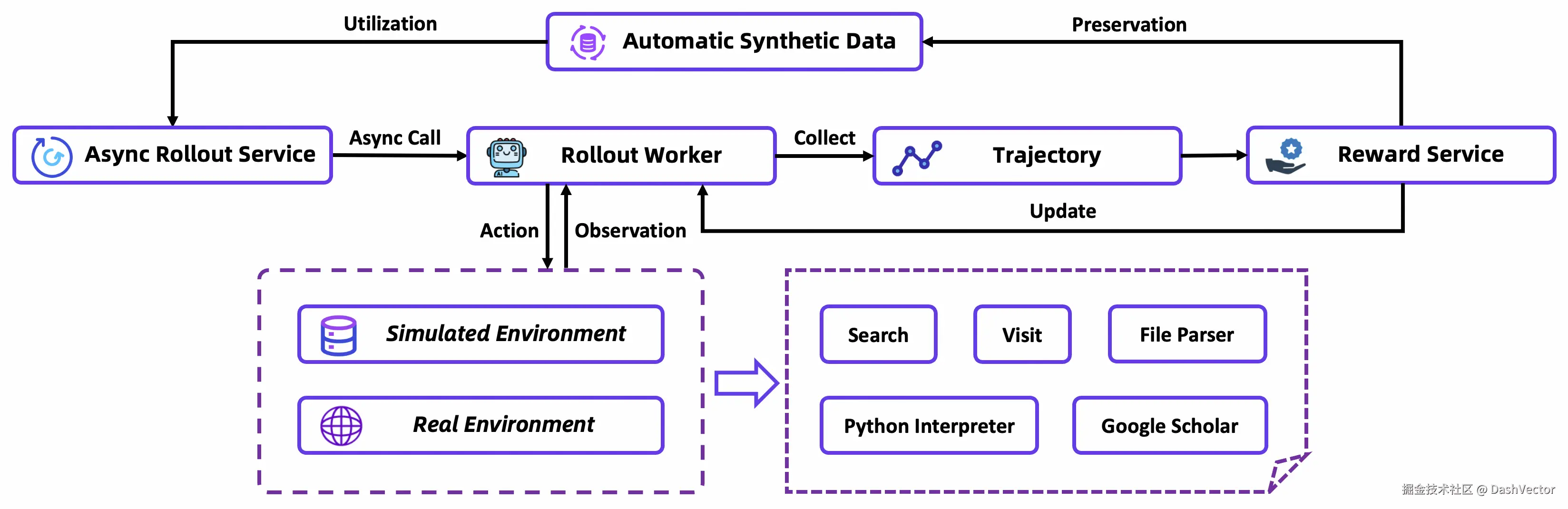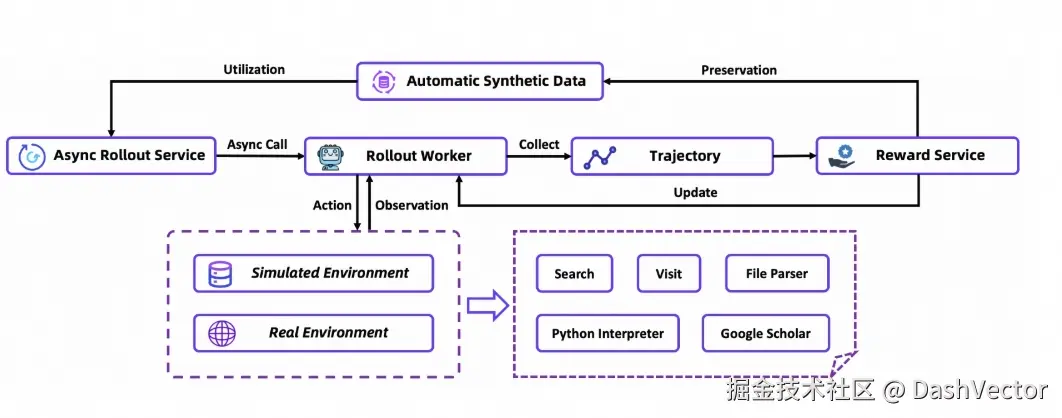 通过强化学习构建高质量的Agent是一项复杂的系统工程挑战;如果将整个开发过程视为一个“强化学习”循环,其组件中的任何不稳定或鲁棒性不足都可能导致错误的“奖励”信号。接下来,我们将分享我们在强化学习方面的实践,涵盖算法和基础设施两个方面。