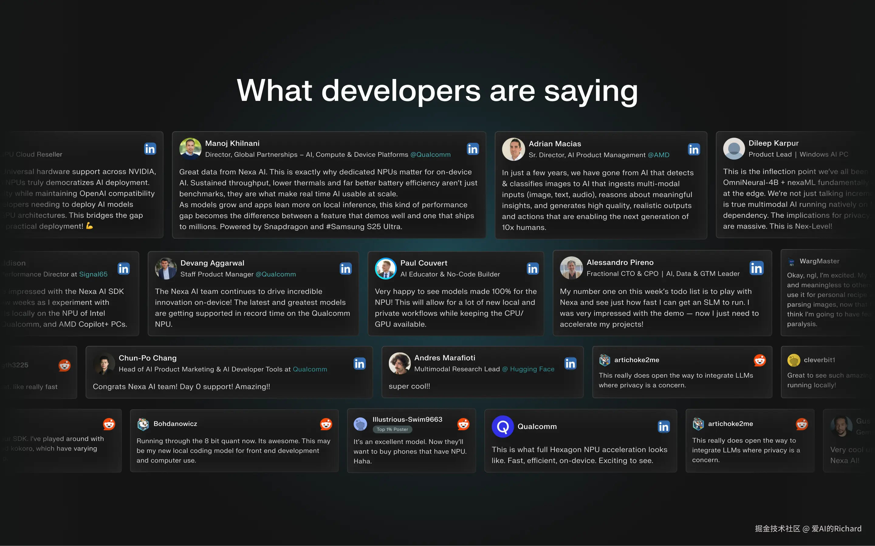 NEXA SDK一经发布也获得了包括AMD/高通的诸多行业认可: