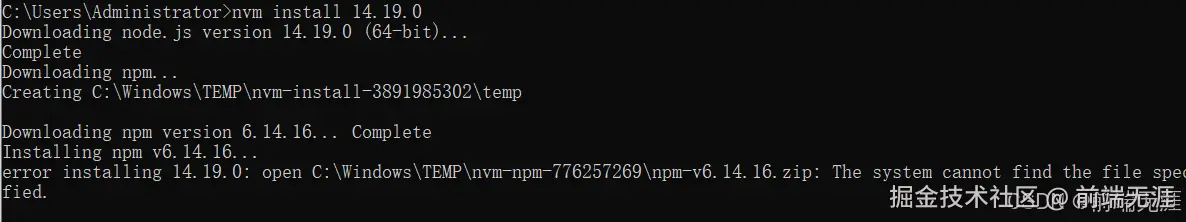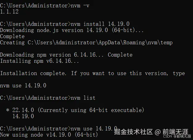 注意2:如果你需要安装低版本的node.js,不要安装最新版本的nvm,否则你安装低版本的时候会报错,无法安装(建议1.1.12版本就可以)