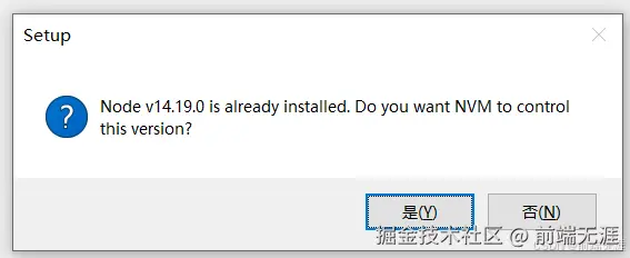 注意1:如果你已经安装过其他版本的node.js,会弹出授权管理本地node的 弹框,选择同意即可管理你已经安装的node版本(这里我本地安装过14.19.0版本了)