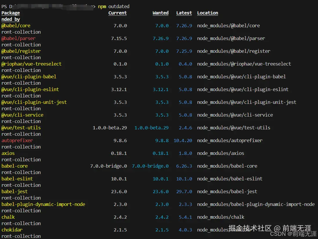 将所有过时依赖更新到当前版本node.js支持的依赖版本,由于node版本,以及项目依赖版本没有参考性,只能靠自己一点点根据报错信息反复修改了